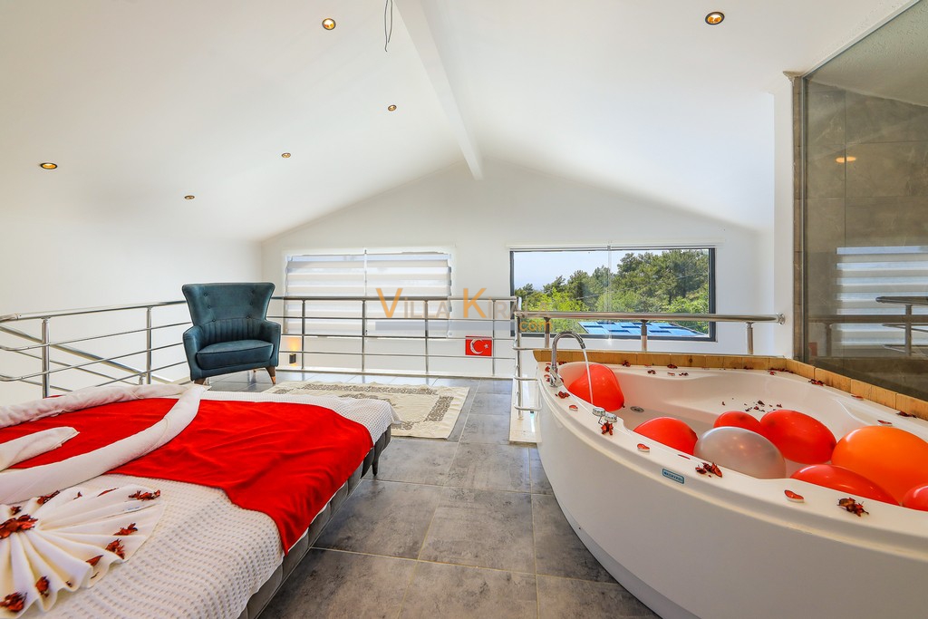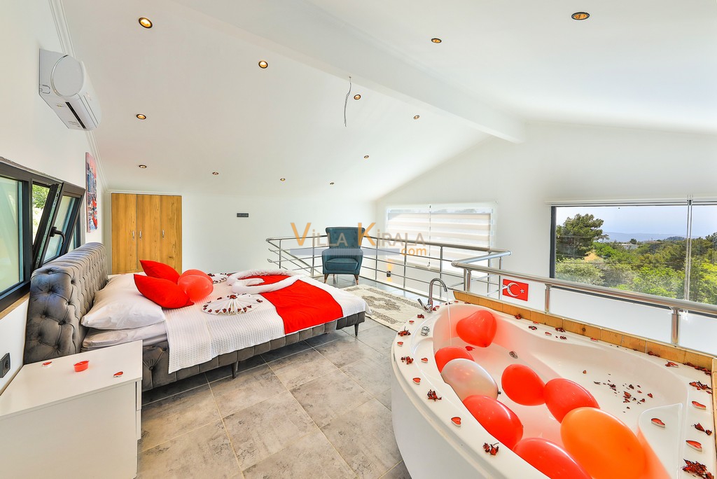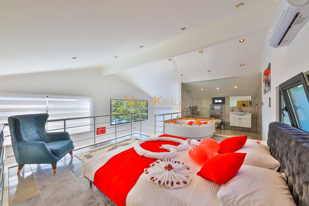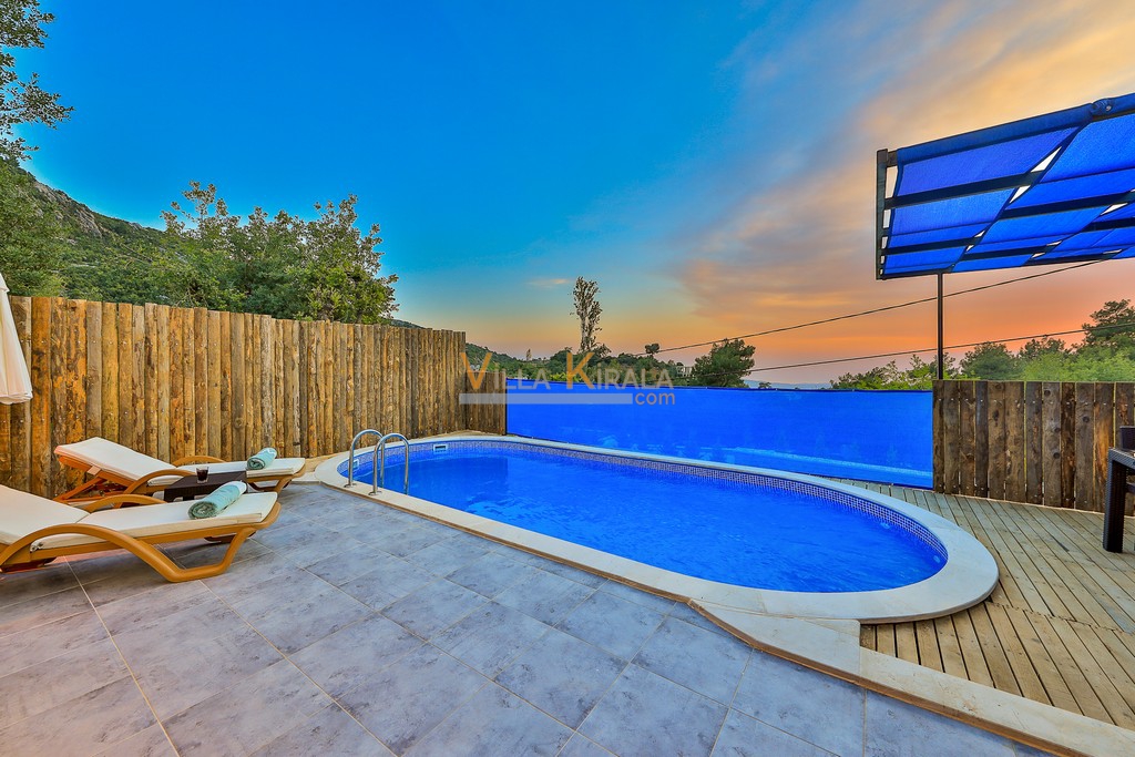 Kalkan İslamlar bölgesinde bulunan muhafazakar villamızdır. Balayı çiftlerimiz için oldukça ideal bir seçenektir. Havuz başı muhafazakar olup dışarıdan görünmemektedir. Çiftlerimiz havuz başını gönül rahatlığıyla kullanabilirler.